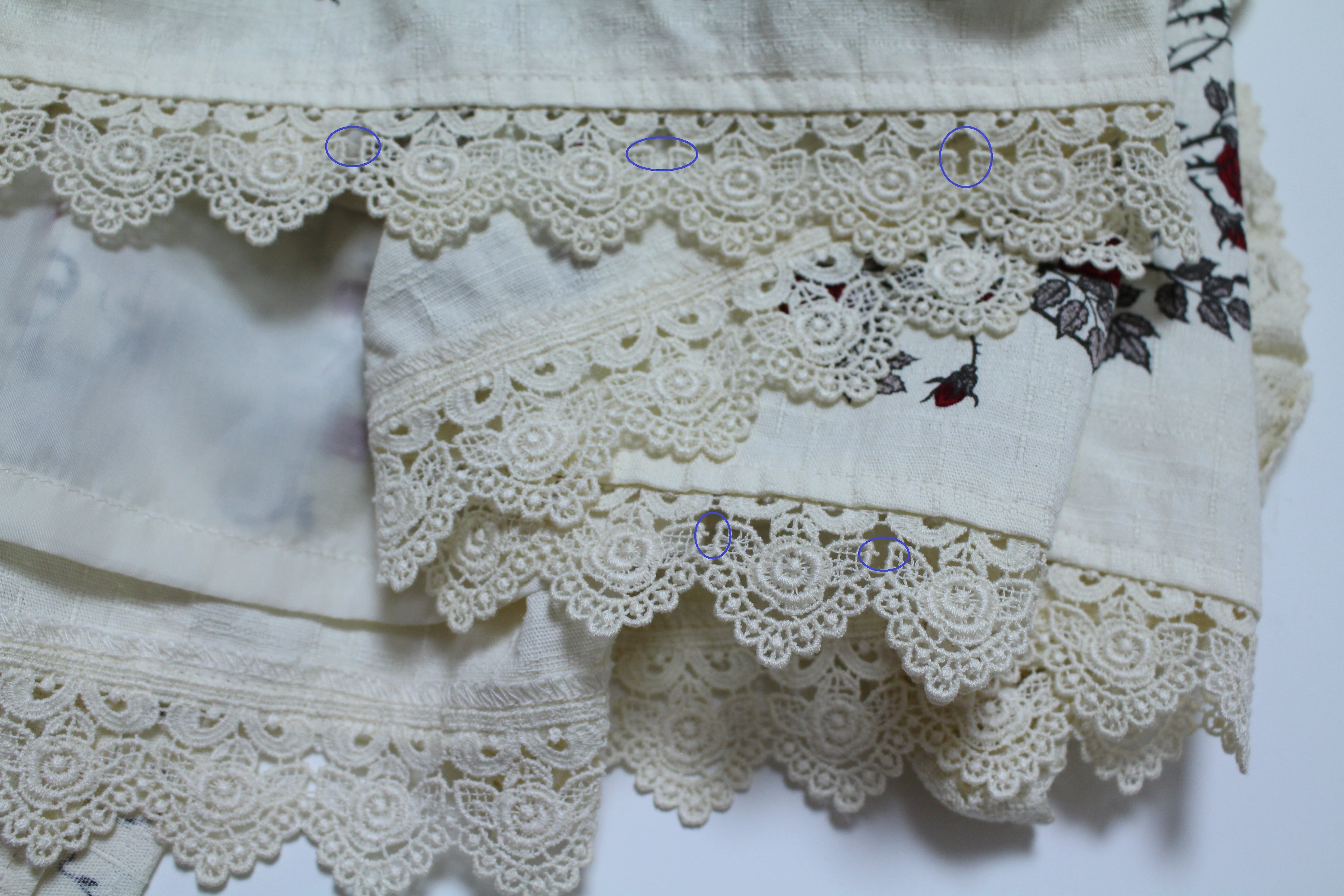 ●青印部分の裾レースの細かい線にちょこちょこ切れあり(目立ちません)